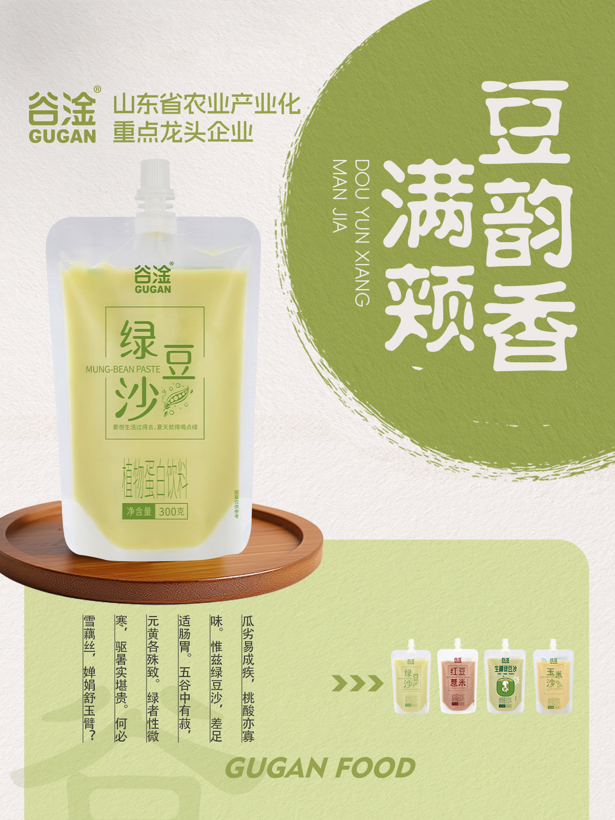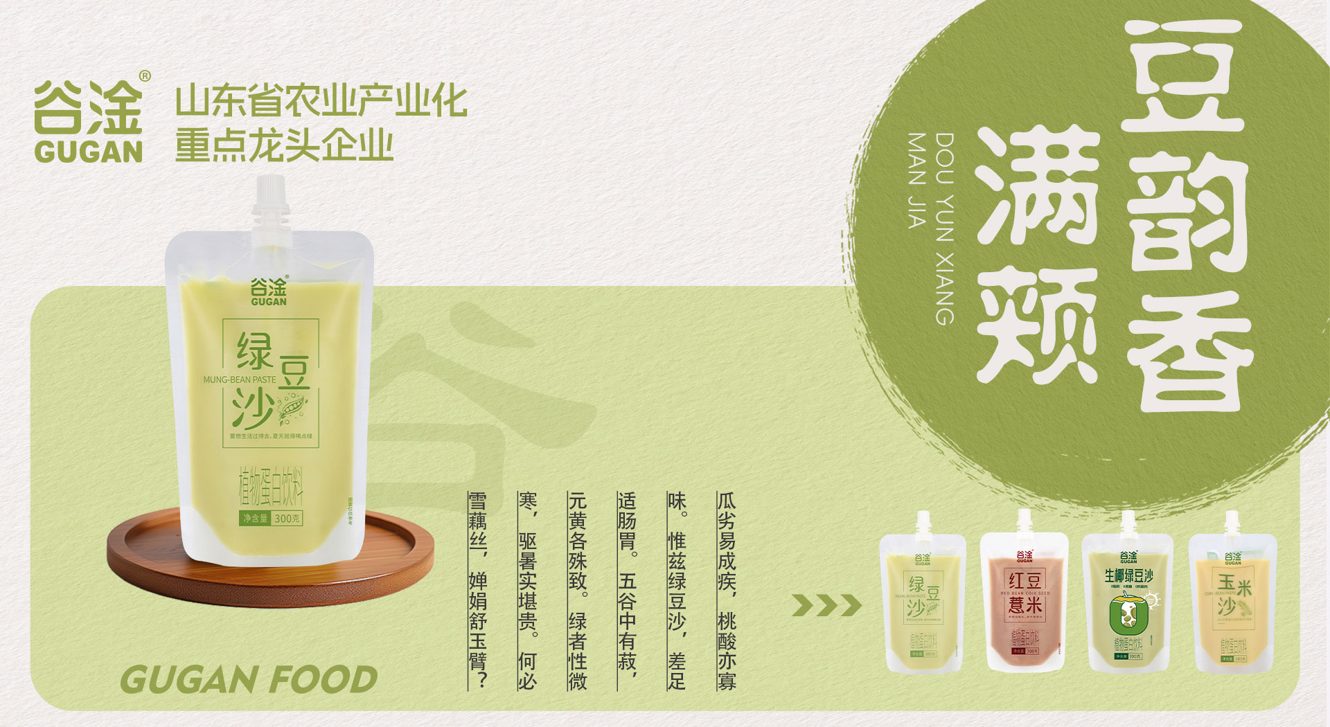 山東谷淦食品有限公司總部位于山東省淄博市,是一家集生態(tài)化農(nóng)業(yè)種植、中草藥種植、農(nóng)副產(chǎn)品加工、商貿(mào)物流、營(yíng)銷服務(wù)于一體的農(nóng)業(yè)產(chǎn)業(yè)化省級(jí)重點(diǎn)龍頭企業(yè),從生產(chǎn)到終端,構(gòu)建農(nóng)工商高度融合、一二三產(chǎn)業(yè)相互支撐的現(xiàn)代化經(jīng)營(yíng)體系。集團(tuán)公司主要產(chǎn)品包括谷物飲料、植物蛋白飲料、八寶粥、奶昔及果汁飲料、中式養(yǎng)生飲品等系列方便食品,旗下?lián)碛小肮蠕啤薄ⅰ案V鄟怼薄ⅰ邦U慕”、“甘噸噸”、“妃生元”、“植豆說”等眾多品牌。